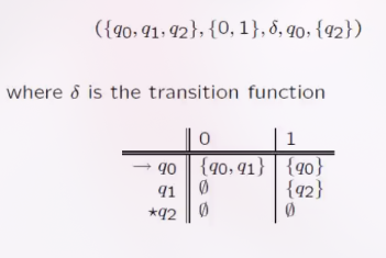 01”.Misalkan kita punya NFA sederhana dengan state di mana adalah final state.