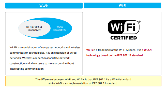 Aspek 802.11 (WiFi) 802.15 (Personal Area Network) Jangkauan Hingga 100+ meter Kurang dari 10 meter diameter Tipe Jaringan WLAN (Wireless LAN) PAN (Personal Area Network) Infrastruktur Menggunakan Access Point Ad hoc: tanpa infrastruktur Arsitektur Infrastructure mode dengan AP sebagai pusat Master/Slave: