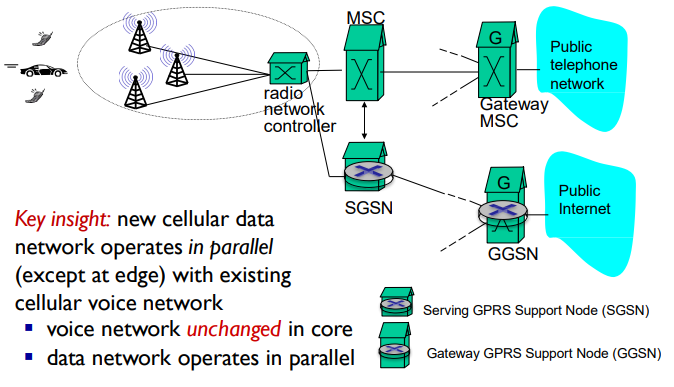 - SGSN (Serving GPRS Support Node): Berfungsi seperti MSC untuk data. Ia melacak lokasi perangkat, mengelola sesi data, dan melakukan autentikasi.