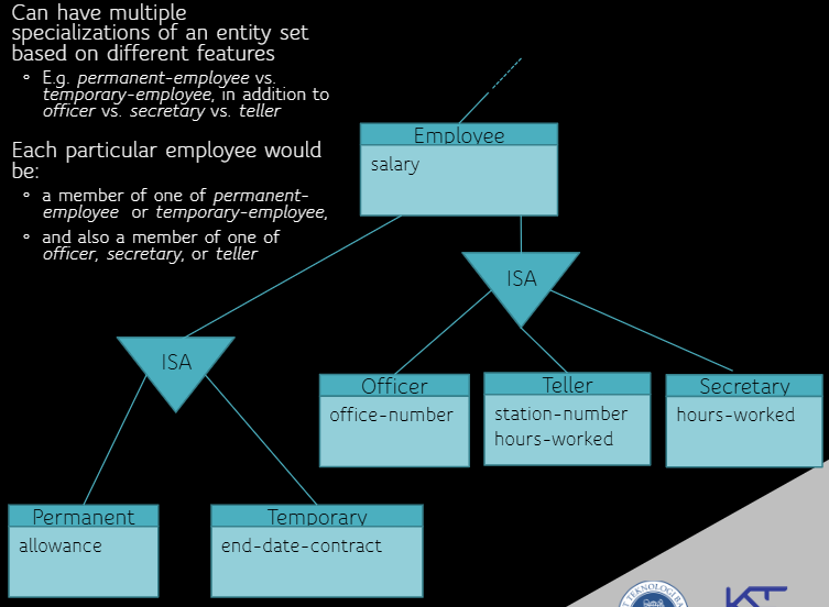 - Dapat didefinisikan Spesialisasi yang berbeda untuk sebuah entitas.