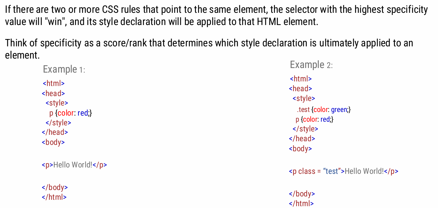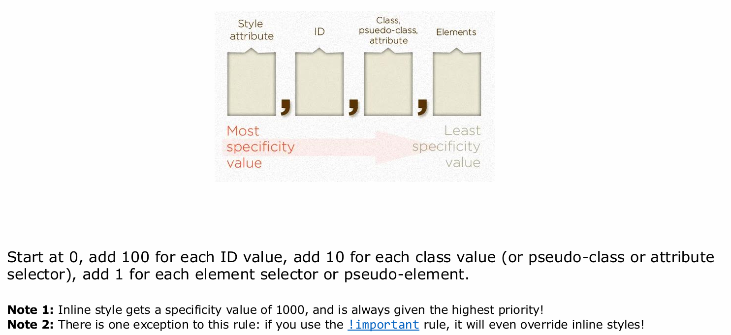 Specificity: Sebuah algoritma yang menentukan seberapa spesifik sebuah selector. Selector yang lebih spesifik akan menang.