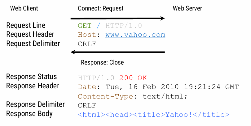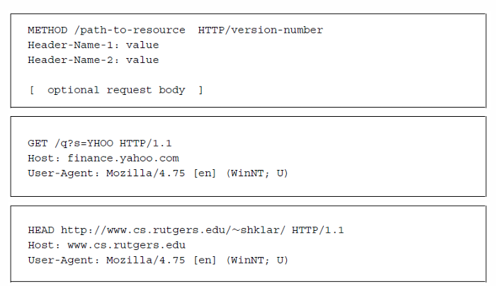 Baik pesan request maupun response memiliki struktur yang serupa, terdiri dari tiga bagian utama: