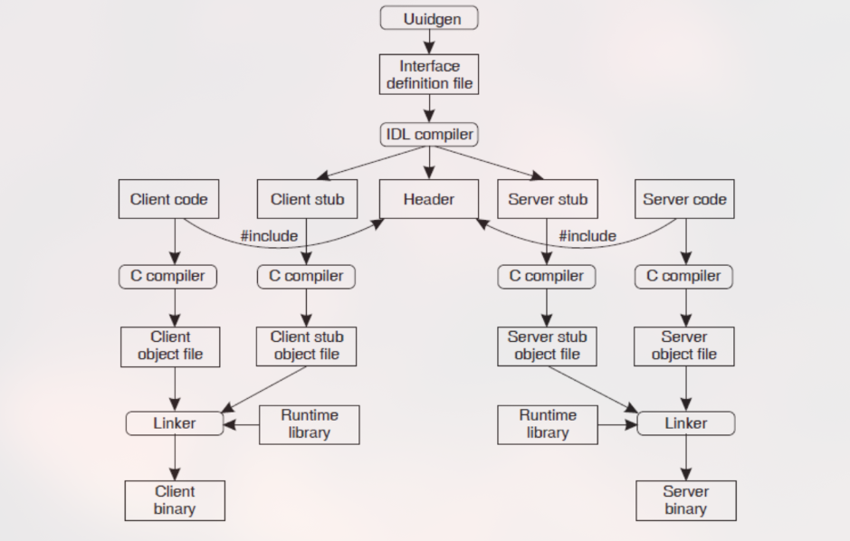 Client stub,Server stub, danHeader file.Programmer menulis kode Client (yang memanggil stub) dan kode Server (implementasi fungsi).