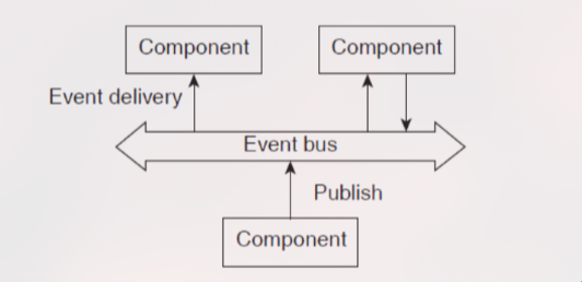 Komponen (Publisher) mempublikasikan event ke Event Bus tanpa tahu siapa penerimanya.