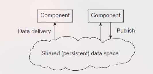 Komponen mempublikasikan data ke sebuah shared space (database, blackboard) yang persisten.