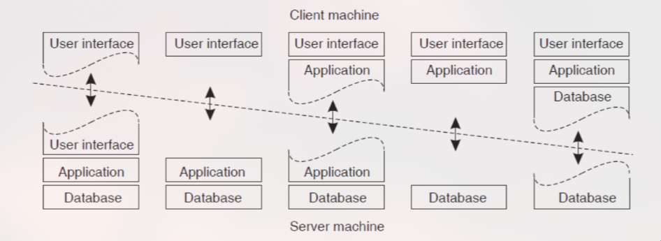 Gambar ini menunjukkan berbagai cara membagi logika antara Client dan Server: