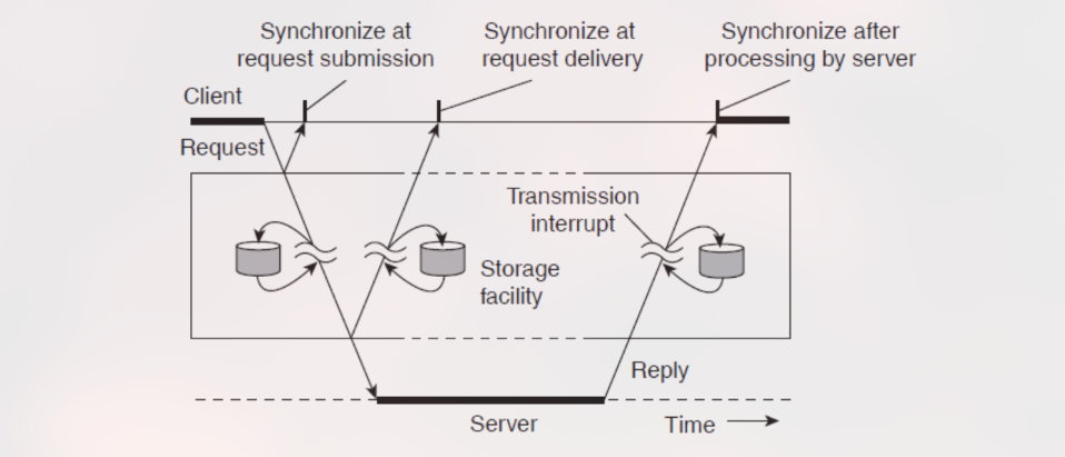Kegagalan (misal: server crash) harus ditangani saat itu juga, karena client sedang menunggu.