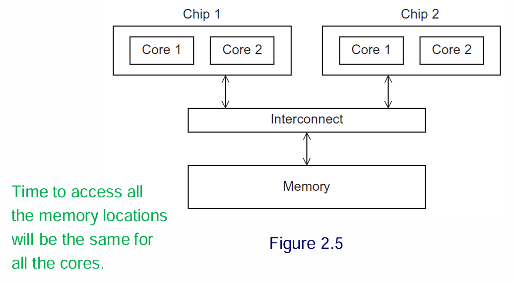 UMA (Uniform Memory Access): Waktu yang dibutuhkan setiap core untuk mengakses lokasi memori mana pun adalah sama. Umum pada PC dan laptop multicore.