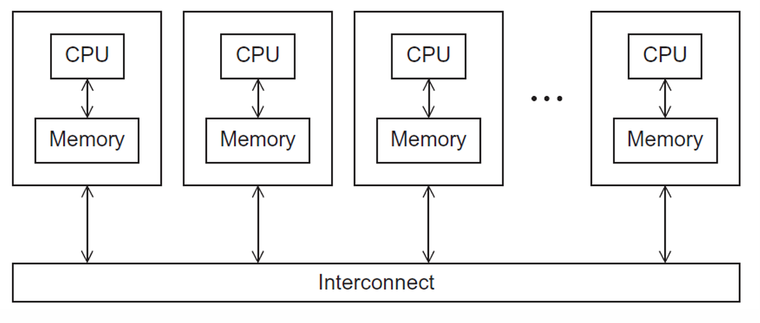 Konsep: Setiap prosesor memiliki memorinya sendiri yang bersifat privat. Tidak ada prosesor yang dapat mengakses memori milik prosesor lain secara langsung.