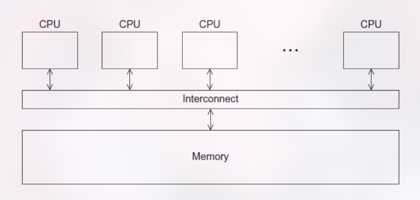 Komponen: Terdiri dari beberapa CPU, sebuah interconnect (jalur komunikasi), dan satu blok memori.