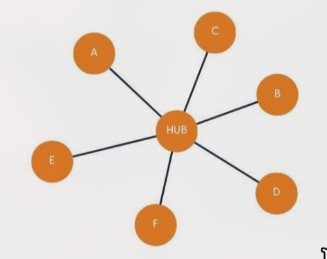 Sistem lain (Spokes) terhubung ke Hub ini, bukan ke satu sama lain.
