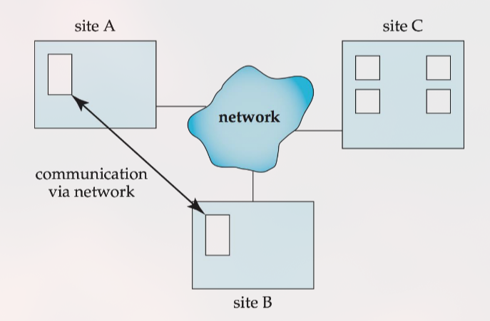 Distributed System adalah sistem di mana data tersebar di banyak mesin (disebut sites atau nodes) yang terhubung oleh jaringan. Mesin-mesin ini bisa jadi terpisah secara geografis (antar kota atau negara).