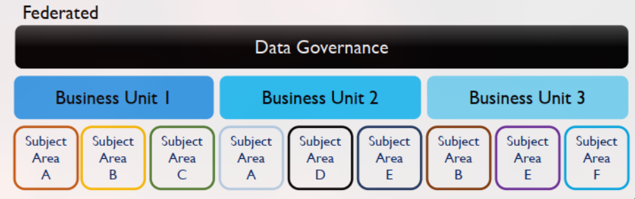 - Satu organisasi DG pusat **berkoordinasi** dengan berbagai Unit Bisnis untuk menjaga konsistensi definisi dan standar. - Ini adalah model campuran (hybrid) yang paling umum, menyeimbangkan antara kontrol pusat (untuk hal-hal enterprise) dan otonomi lokal (untuk hal-hal spesifik unit bisnis).Data Stewardship