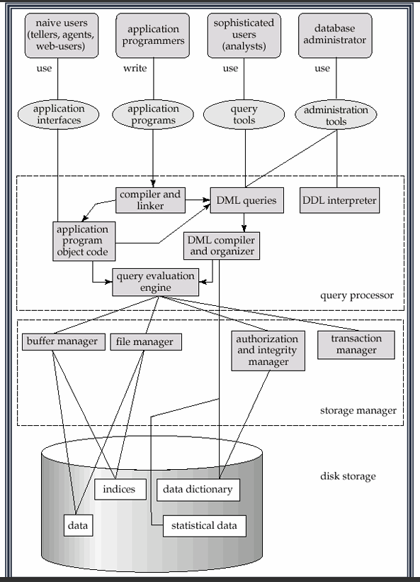 Transaction Manager: Memastikan bahwa database tetap dalam keadaan konsisten meskipun terjadi kegagalan sistem dan mengelola transaksi yang berjalan bersamaan.