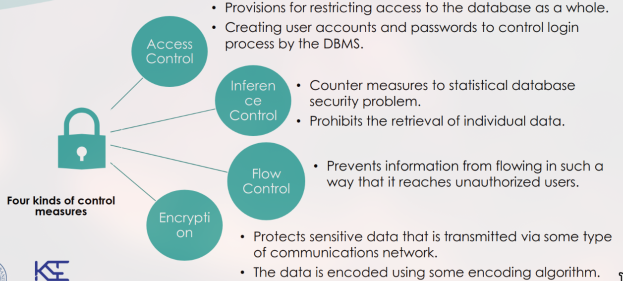 Access Control: Mekanisme utama yang membatasi akses ke database, biasanya melalui akun pengguna dan kata sandi.