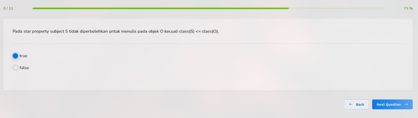 b. Edward sebagai U, berdasarkan Simple Security Property, hanya akan melihat (Read) atribut Nama dengan isi Jonathan Christie