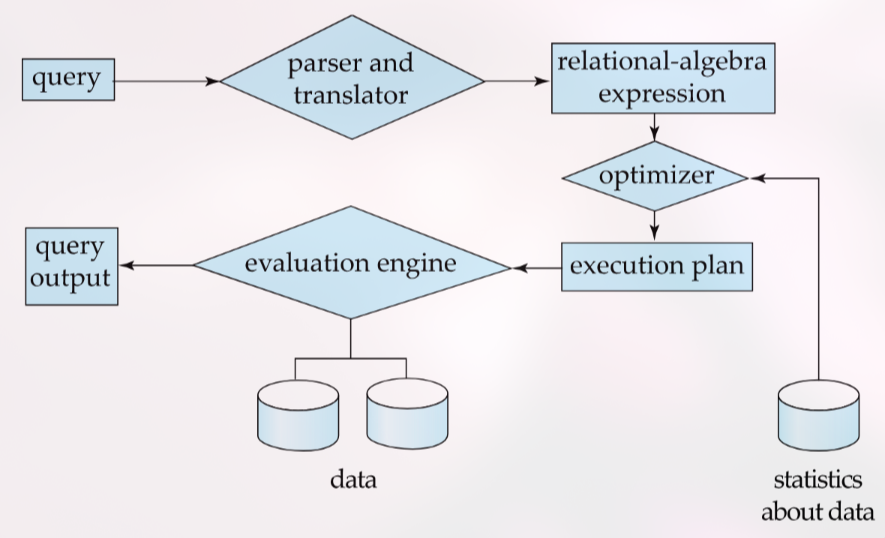 Evaluation: Query-execution engine mengambil rencana evaluasi yang sudah dioptimalkan, menjalankannya, dan mengembalikan hasil query kepada pengguna.