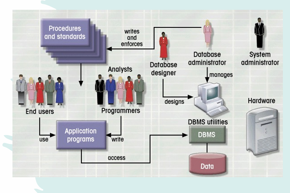 Sebuah sistem basis data yang fungsional beroperasi dalam sebuah ekosistem yang disebut Lingkungan Sistem Basis Data. Lingkungan ini terdiri dari lima komponen utama yang saling bekerja sama: