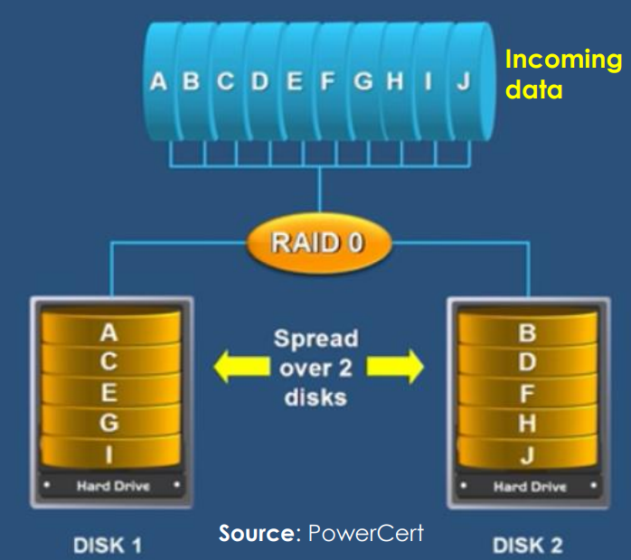 Redundancy: Menyimpan informasi ekstra (baik berupa salinan penuh atau data paritas) yang dapat digunakan untuk membangun kembali data jika salah satu disk mengalami kegagalan.