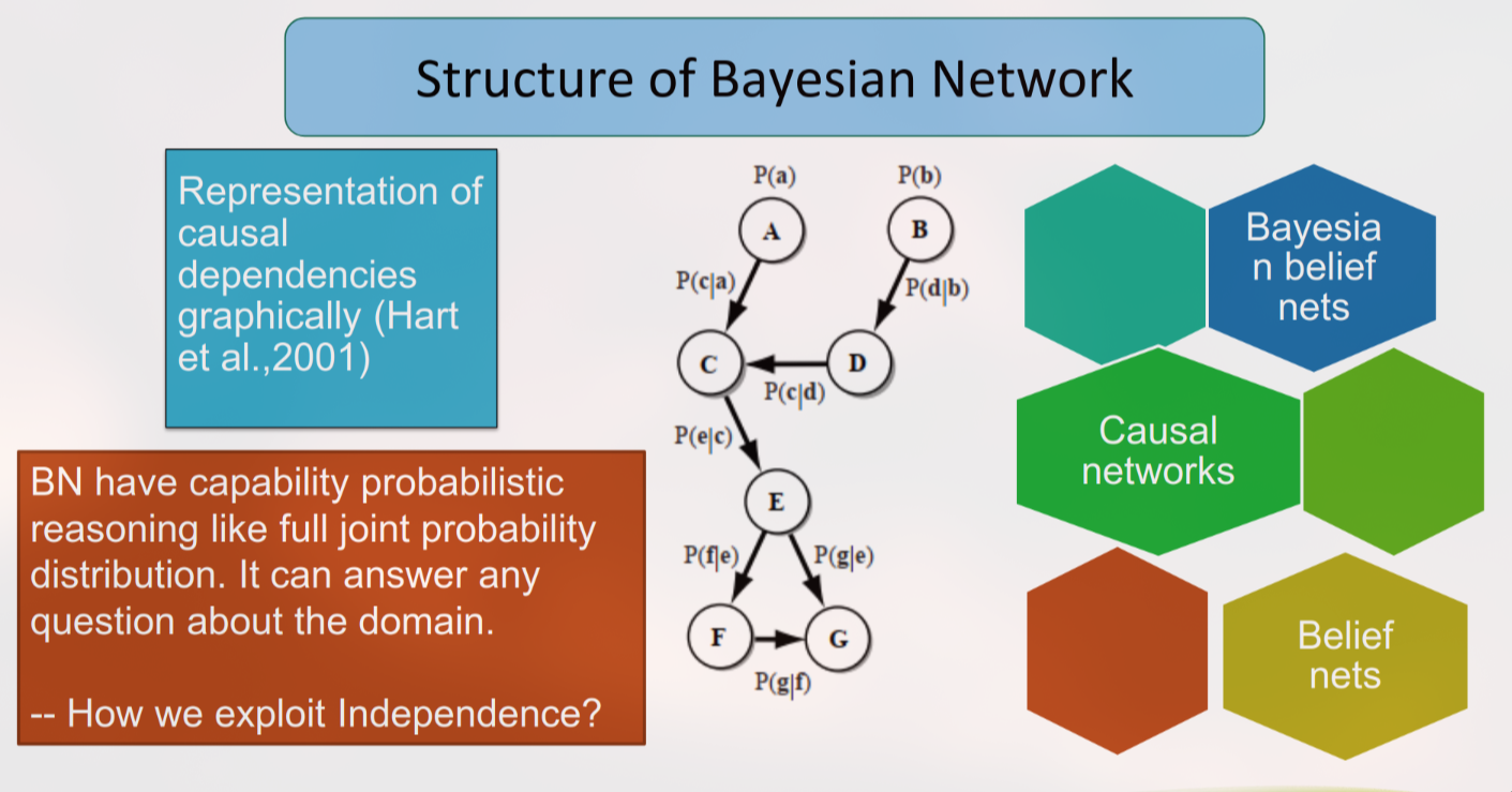 BN (disebut juga Belief Nets atau Causal Networks) memanfaatkan hubungan independensi antar variabel untuk mengurangi jumlah probabilitas yang perlu disimpan secara drastis.
