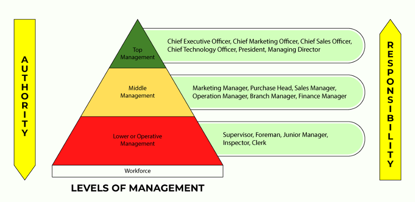 Organisasi umumnya memiliki tiga tingkatan manajemen yang membentuk hierarki:
